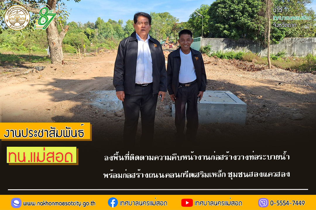 เทศบาลนครแม่สอด ลงพื้นที่ติดตามความคืบหน้างานก่อสร้างวางท่อระบายน้ำ พร้อมก่อสร้างถนนคอนกรีตเสริมเหล็ก ชุมชนสองแควสอง