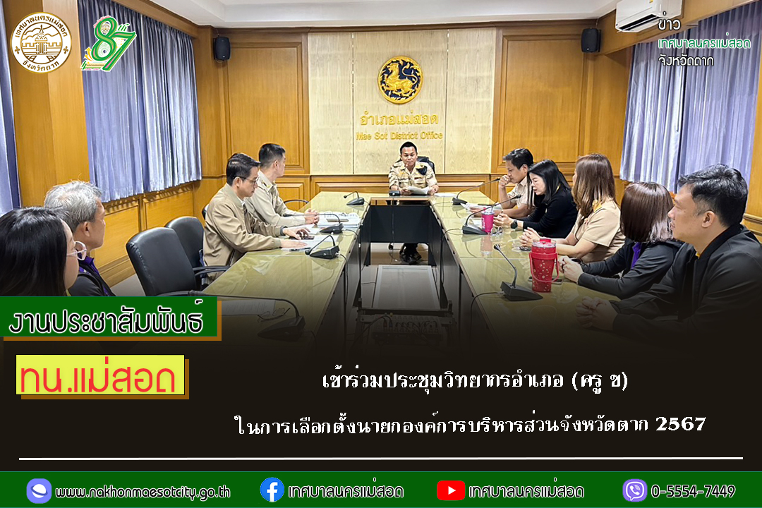 ทน.แม่สอด เข้าร่วมประชุมหารือวิทยากรอำเภอแม่สอด (ครู ข) เลือกตั้งนายกองค์การบริหารส่วนจังหวัด 2567