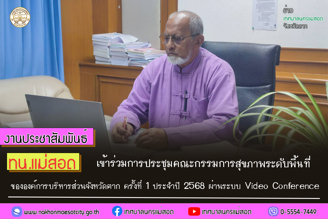 ทน. แม่สอด เข้าร่วมการประชุมคณะกรรมการสุขภาพระดับพื้นที่ ขององค์การบริหารส่วนจังหวัดตาก ครั้งที่ 1 ประจำปี 2568 ผ่านระบบ video Conference
