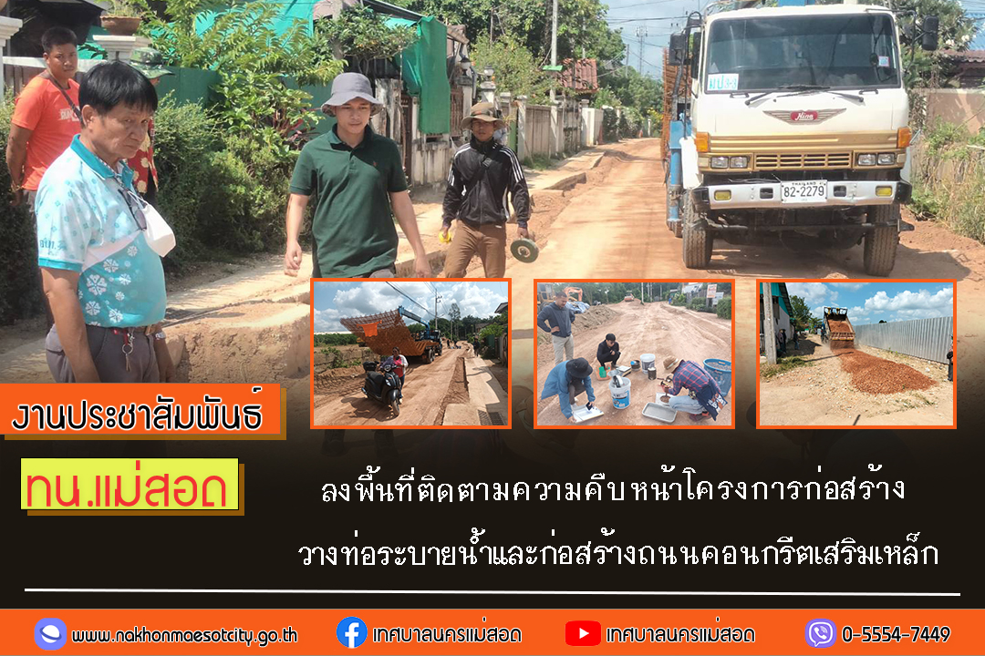 ทน.แม่สอด ลงพื้นที่ติดตามความคืบหน้าโครงการก่อสร้างวางท่อระบายน้ำและก่อสร้างถนนคอนกรีตเสริมเหล็ก