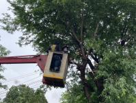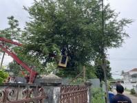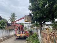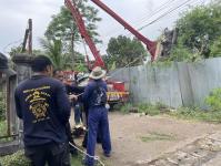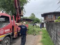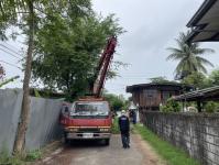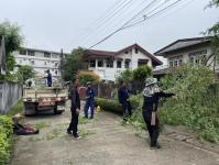 วันที่ 12 มิถุนายน 2566 ฝ่ายป้องกันฯ นครแม่สอด ได้รับคำขอความอนุเคราะห์จากประชาชนให้ช่วยตัดต้นไม้พาดสายไฟฟ้า ถนนเยลลี่อุทิศ อำเภอแม่สอด จังหวัดตาก เกรงว่าเมื่อเกิดฝนตกลมแรงอาจเกิดการล้มทับสายไฟก่อให้เกิดอันตรายได้ เมื่อได้รับคำขอดังกล่าว จึงนำรถยนต์บรรทุก 6 ล้อ พร้อมอุปกรณ์ ออกตรวจสอบพื้นที่ พบว่ามีต้นไม้สูงมีกิ่งไม้พาดผ่านสายไฟฟ้าและเสี่ยงต่อการเกิดเหตุอันตรายจริง จึงประสานรถกระเช้าไฟฟ้าเข้าร่วมดำเนินการจุดดังกล่าว พนักงานดับเพลิงทำการใช้มีด เลื่อยโซ่ยนต์ ทำการตัดจนพร้อมยกใส่รถยนต์บรรทุกดำเนินการต่อไป