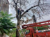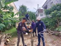 วันที่ 19 มิถุนายน 2566 ฝ่ายป้องกันฯ นครแม่สอด ได้รับคำขอความอนุเคราะห์จากประชาชนให้ช่วยตัดต้นไม้แห้งตาย(ต้นมะม่วง) ถนนสมัครสรรพการ ตำบลแม่สอด อำเภอแม่สอด จังหวัดตาก เกรงว่าเมื่อเกิดฝนตกลมแรงอาจเกิดการล้มทับก่อให้เกิดอันตรายได้ เมื่อได้รับคำขอดังกล่าว จึงนำรถยนต์บรรทุก 6 ล้อ พร้อมอุปกรณ์ ออกตรวจสอบพื้นที่ พบว่ามีต้นไม้แห้งสูงและเสี่ยงต่อการเกิดเหตุอันตรายจริง จึงประสานรถกระเช้าไฟฟ้าเข้าร่วมดำเนินการจุดดังกล่าว พนักงานดับเพลิงทำการใช้มีด เลื่อยโซ่ยนต์ ทำการตัดจนพร้อมยกใส่รถยนต์บรรทุกดำเนินการต่อไป