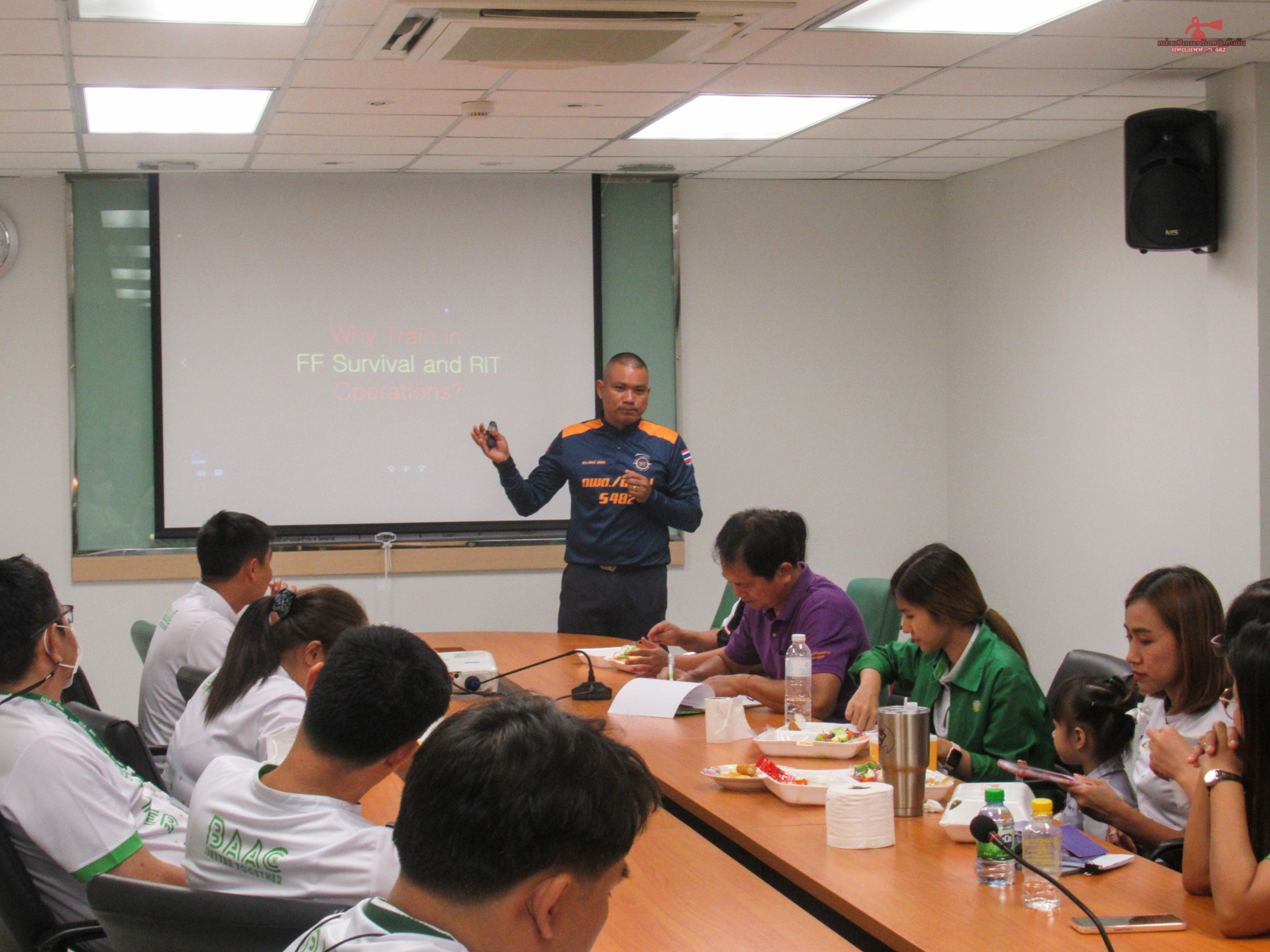 วันที่ 11 กรกฎาคม 2566 เวลา 16.00 - 21.00 น. เจ้าหน้าที่หน่วยฝึก ดพต./ดพฝ.-ร482 ออกฝึกอบรม เรื่อง การดับเพลิงขั้นต้น การฝึกซ้อมดับเพลิง และฝึกซ้อมอพยพหนีไฟ ให้กับ ธนาคารเพื่อการเกษตรและสหกรณ์การเกษตร สาขาแม่สอด ตามโครงการอบรมเชิงปฏิบัติการเรื่องการอบรมดับเพลิงเบื้องต้น ประจำปี 2566 โดยการจัดให้มีการฝึกอบรมการป้องกันและระงับอัคคีภัย การดับเพลิงเบื้องต้นและการใช้ถังเคมีดับเพลิง โดยมีการให้ความรู้เกี่ยวกับ เรื่อง แผนการดับเพลิงและวิธีการดับเพลิงของ สถานประกอบการ ฝึกซ้อมดับเพลิง และได้ให้ความรู้เกี่ยวกับการป้องกันระงับอัคคีภัย องค์ประกอบของการเกิดไฟ ประเภทของไฟ ความรู้เกี่ยวกับสารเคมี การใช้ถังดับเพลิงเคมี พร้อมสาธิตการฝึกปฏิบัติ การใช้อุปกรณ์เครื่องมือการดับเพลิงและบรรเทาสาธารณภัย การใช้อุปกรณ์ดับเพลิงอย่างถูกวิธี เลือกใช้ ความปลอดภัย การแนะนำอุปกรณ์ชุดผจญเพลิง เป็นต้น