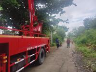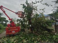วันที่ 5 ตุลาคม 2566 เวลา 09.00 น.ฝ่ายป้องกันฯ นครแม่สอด ได้รับคำร้อง ขอความอนุเคราะห์ตัดต้นไม้ บริเวณหลังอู่ช่างลือ อำเภอแม่สอด จังหวัดตาก เนื่องจากมีกิ่งไม้พาดผ่านสายไฟฟ้า เกรงว่าจะเกิดเหตุอันตราย จึงนำรถยนต์บรรทุก 6 ล้อ และอุปกรณ์ รถกระเช้า กองช่าง ดำเนินการร่วมจุดดังกล่าว โดยทำการใช้มีด เลื่อยโซ่ยนต์ ทำการตัดจนแล้วเสร็จ พร้อมยกใส่รถยนต์บรรทุกดำเนินการต่อไป เพื่อความเป็นระเบียบเรียบร้อย ความปลอดภัยแก่บ้านเรือนประชาชนที่อาศัยอยู่บริเวณดังกล่าว