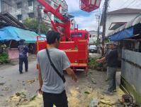 วันที่ 31 ตุลาคม 2566 เวลา 09.00 น.ฝ่ายป้องกันฯ นครแม่สอด ได้รับคำร้อง ขอความอนุเคราะห์ตัดต้นไม้ บริเวณซอยบ้านทุ่งซอยกลาง ชุมชนบ้านทุ่ง อำเภอแม่สอด จังหวัดตาก เนื่องจากกิ่งไม้พาดแนวสายไฟเกรงว่าจะเกิดเหตุอันตราย จึงนำรถยนต์บรรทุก 6 ล้อ และรถกระเช้าไฟฟ้า พร้อมอุปกรณ์ ดำเนินการจุดดังกล่าว โดยทำการใช้มีด เลื่อยโซ่ยนต์ ทำการตัดจนแล้วเสร็จ พร้อมยกใส่รถยนต์บรรทุกดำเนินการต่อไป เพื่อความเป็นระเบียบเรียบร้อย ความปลอดภัย บริเวณดังกล่าว