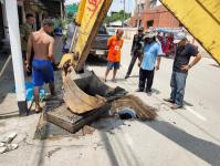 เข้าดำเนินการลอกท่อระบายน้ำ บริเวณชุมชนถุงทอง ภายในซอยโรงเรียนอนุบาลการุณย์ กรณีน้ำระบายไม่ทันในช่วงหน้าฝน