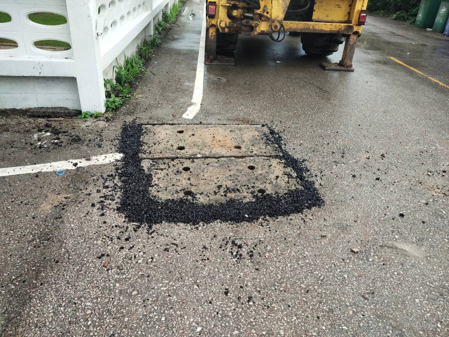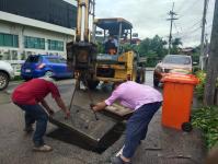 ดำเนินการปรับยกระดับฝาท่อระบายน้ำ กรณีฝาท่อระบายน้ำทรุดตัว บริเวณศาลจังหวัดแม่สอด