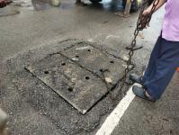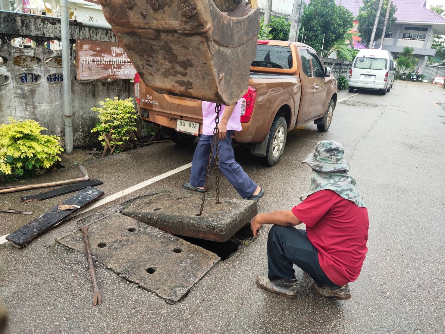ดำเนินการปรับยกระดับฝาท่อระบายน้ำ กรณีฝาท่อระบายน้ำทรุดตัว บริเวณถนนสายสำนักงานคุมประพฤติ