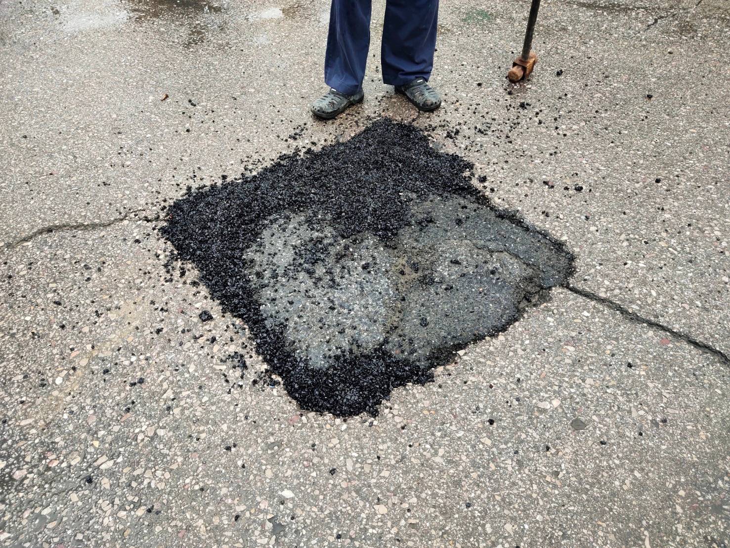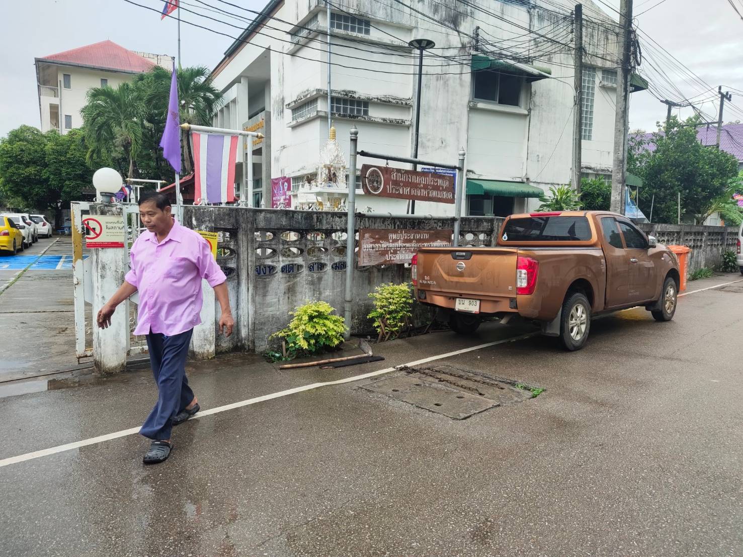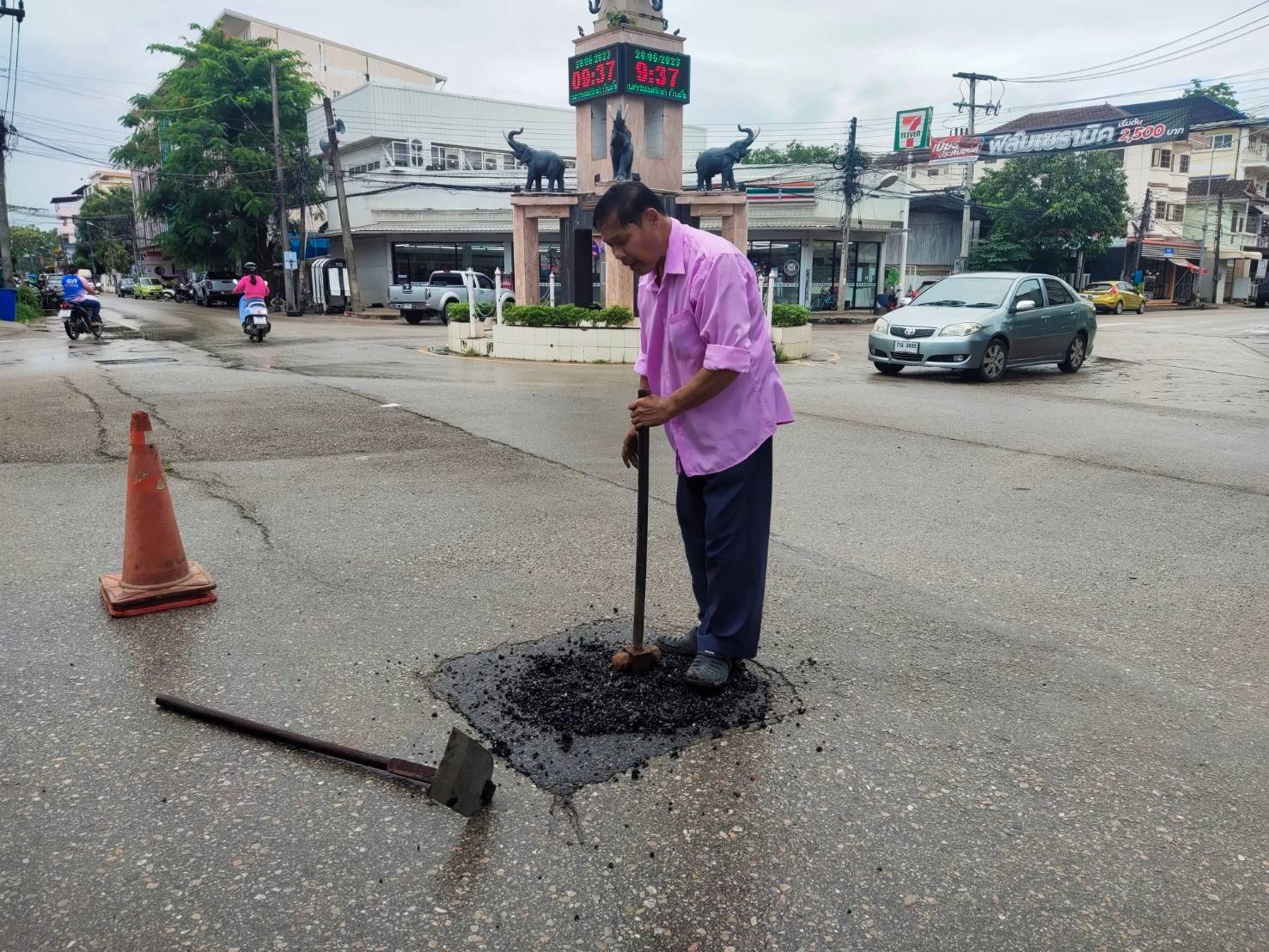 ดำเนินการลงยางมะตอยฝาท่อระบายน้ำ บริเวณวงเวียนหอนาฬิกา โรงเรียนสรรพวิทยาคม