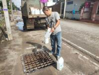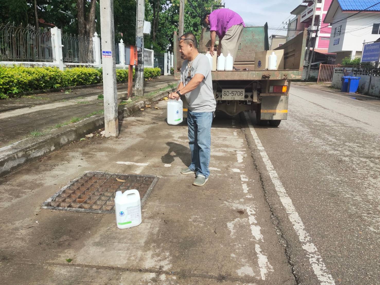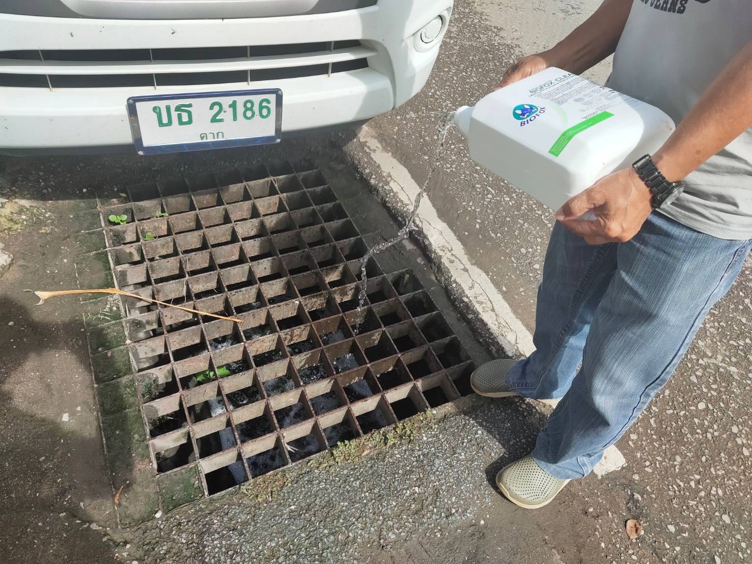 ดำเนินการเต็มสาร EM ภายในท่อระบายน้ำ เพื่อปรับสภาพน้ำและลดกลิ่นเหม็นภายในท่อระบายน้ำ บริเวณตั้งกิมเชียง
