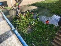 ดำเนินการร่วมกับกองช่างฯ เก็บกำจัดผักตบชวาในลำห้วยแม่สอด บริเวณตรอกลำใย สะพานจงมั่นคง