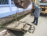 2. เจ้าหน้าที่ภาคสนามกองช่างสุขาภิบาลได้เข้าดำเนินการซ่อมแซมฝาท่อระบายน้ำ ทรุดตัวทั้ง 3 จุด