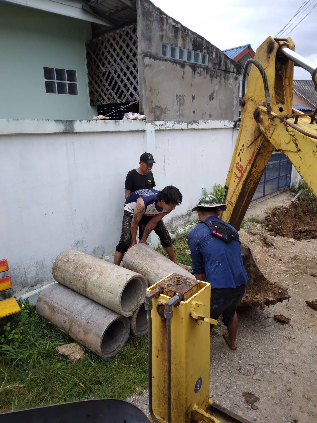 2. เจ้าหน้าที่ภาคสนามกองช่างสุขาภิบาลได้เข้าดำเนินการขุดวางท่อระบายน้ำ ค.ส.ล.30 ซม.