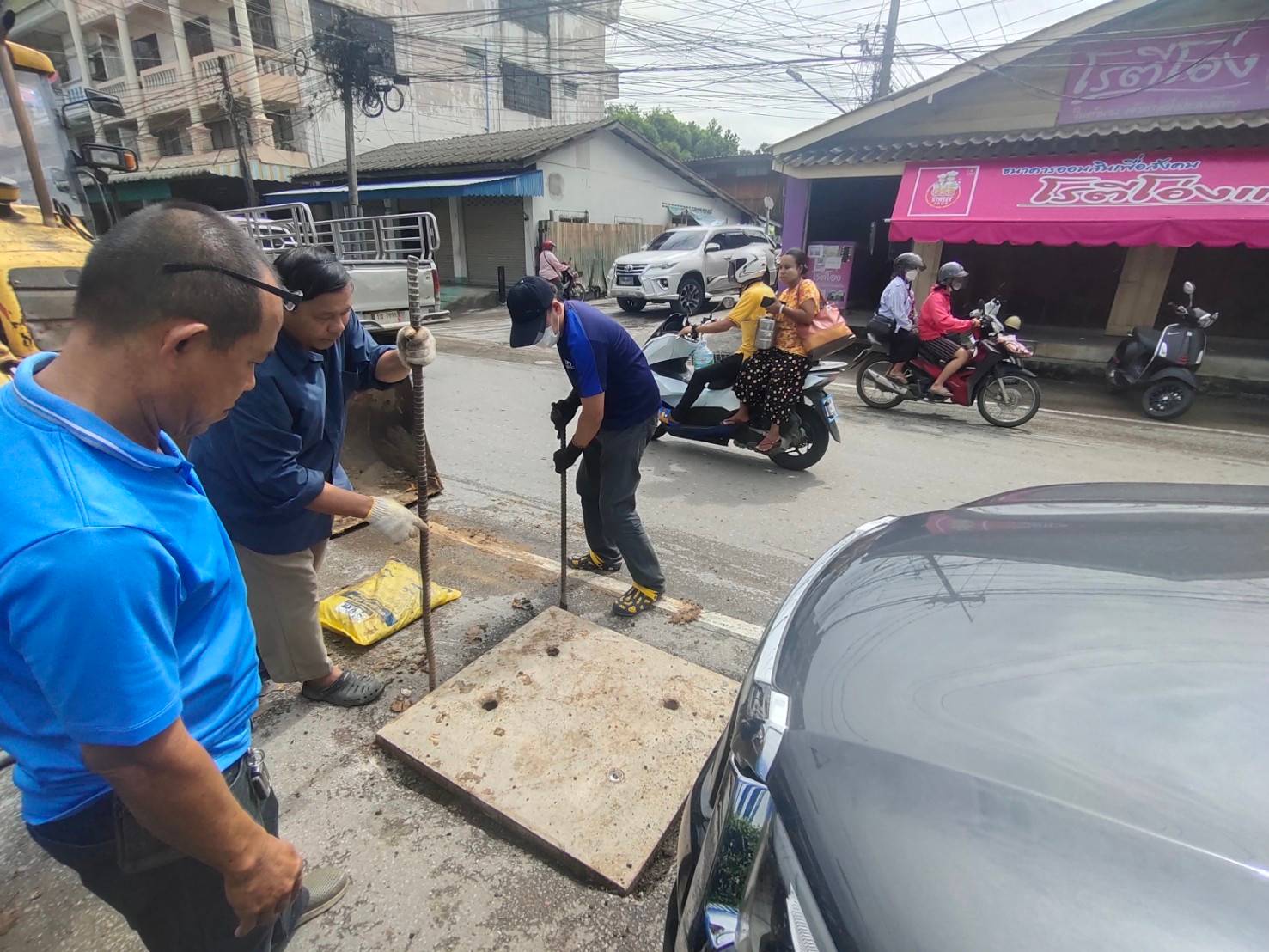 เข้าดำเนินการดำเนินการลงฝาท่อระบายน้ำ ยกระดับพื้นฝา บริเวณหน้าปศุสัตว์ / โรตีโอ่ง จำนวน 2 ฝา