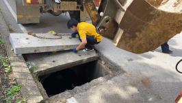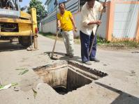 2. เจ้าหน้าที่ภาคสนามกองช่างสุขาภิบาลได้เข้าดำเนินการเปลี่ยนฝาท่อระบายน้ำชำรุด