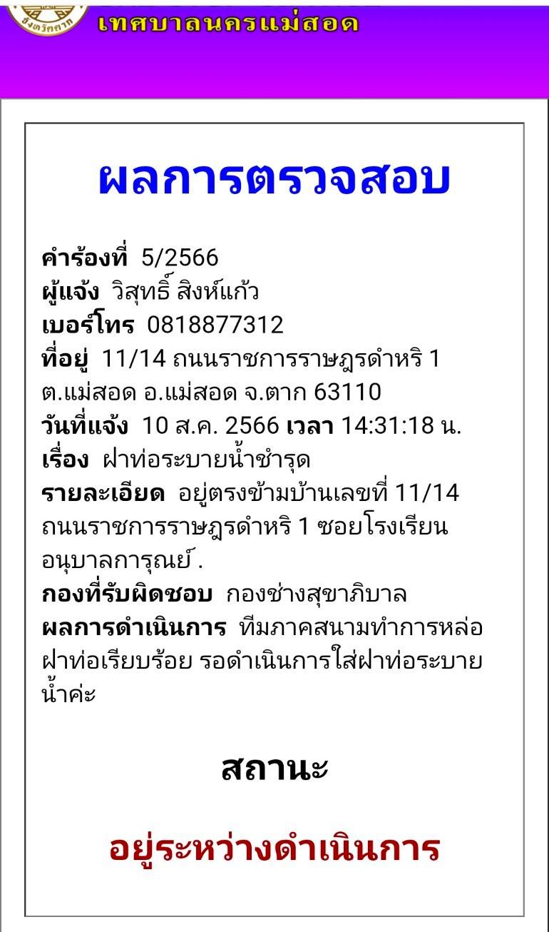 ตามคำร้อง OSS ที่ 5/2566 บริเวณซอยโรงเรียนอนุบาลการุณย์