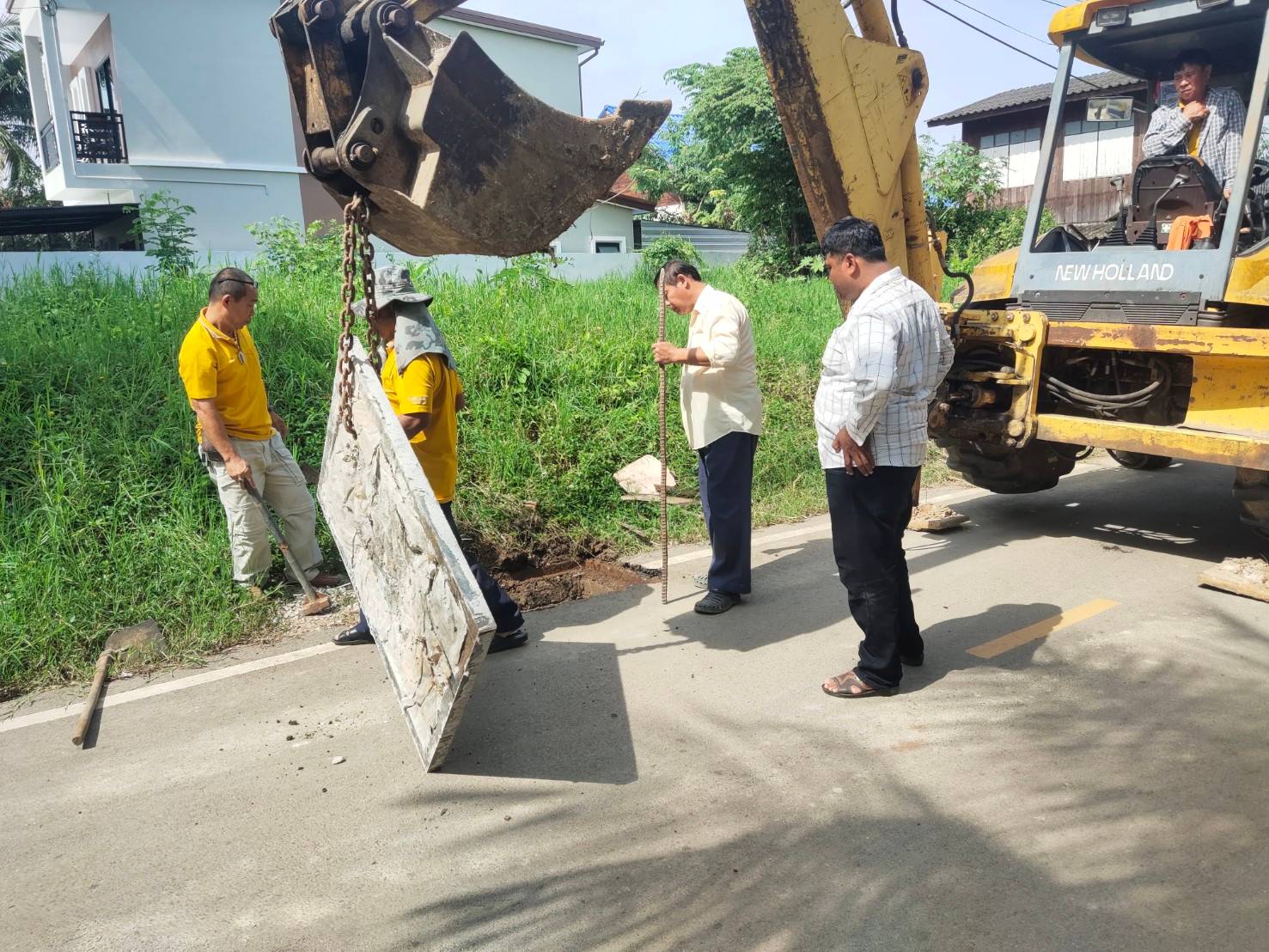 3. เจ้าหน้าที่ภาคสนามกองช่างสุขาภิบาลได้เข้าดำเนินการเปลี่ยนฝาท่อระบายน้ำชำรุด