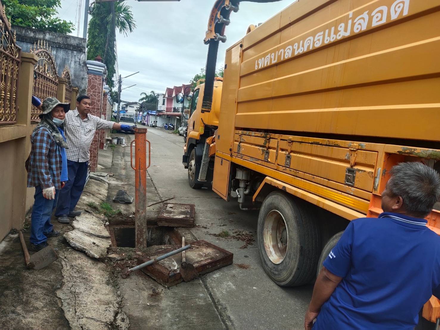 ดำเนินการดูดโคลนลอกท่อระบายน้ำ ตามคำร้อง OSS ที่ 43/2566 บริเวณชุมชนอิสลาม
