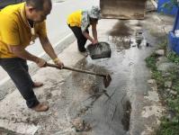 2. เจ้าหน้าที่ภาคสนามกองช่างสุขาภิบาล เข้าดำเนินการขุดเจาะเปิดทางน้ำ