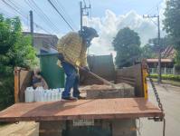 เข้าดำเนินการเทปูนหลุมท่อระบายน้ำทรุดตัวเป็นโพรง
