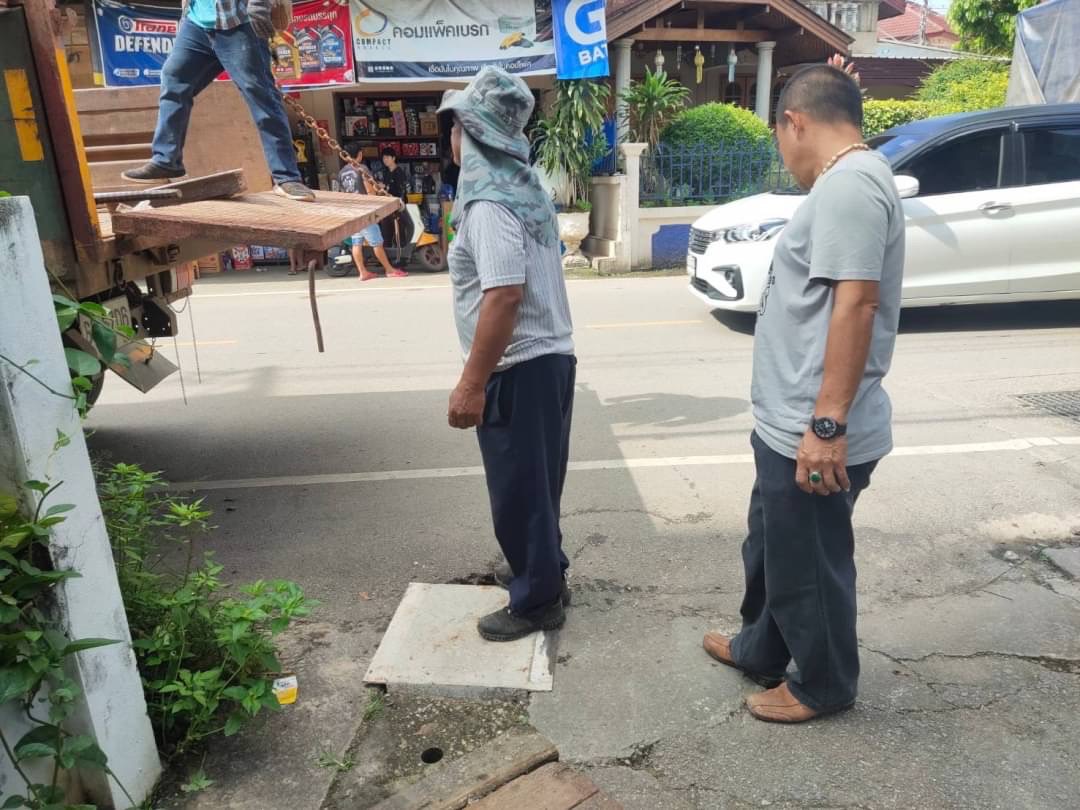 1. เจ้าหน้าที่ภาคสนามกองช่างสุขาภิบาล เข้าดำเนินการเปลี่ยนฝาท่อระบายน้ำชำรุด (ฝารางยู)