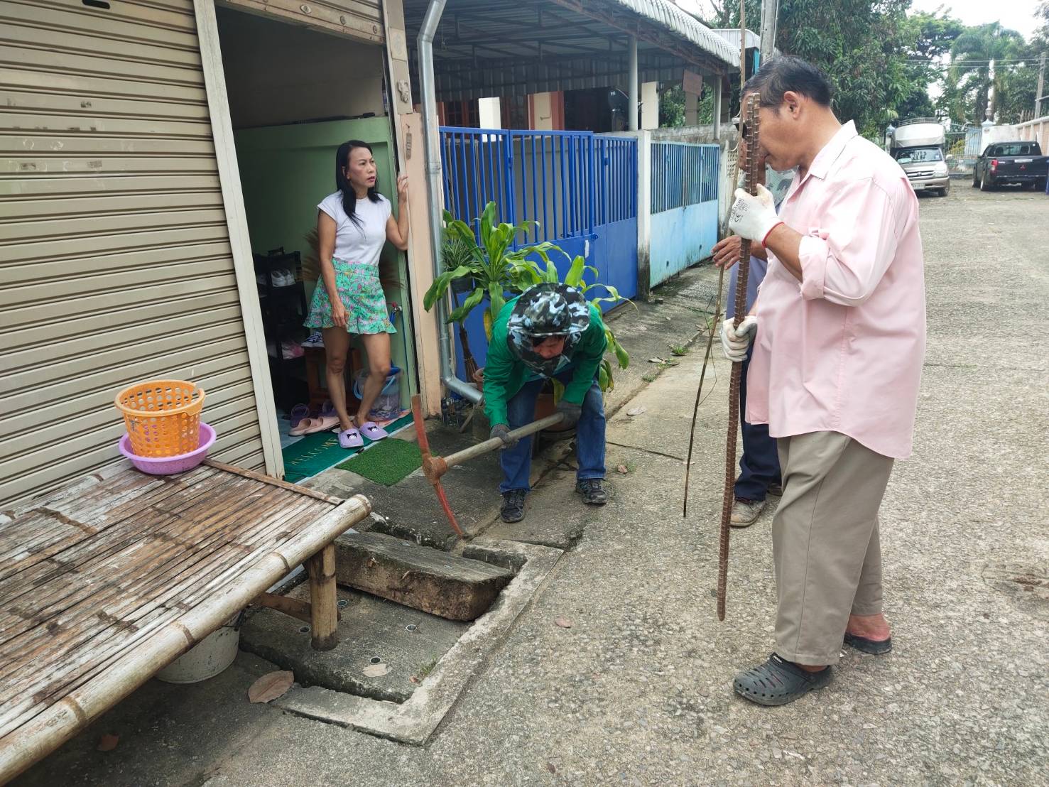2. เจ้าหน้าที่ภาคสนามกองช่างสุขาภิบาลเข้าดำเนินการสำรวจคำร้อง น้ำท่วมขังบริเวณหน้าบ้านเลขที่ 51/67