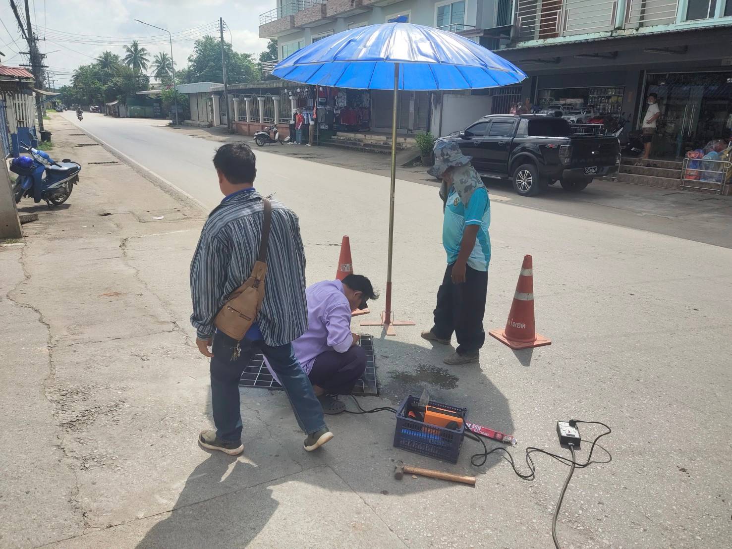 เจ้าหน้าที่ภาคสนามกองช่างสุขาภิบาล ได้เข้าดำเนินการซ่อมแซมฝาท่อระบายน้ำทรุดตัว