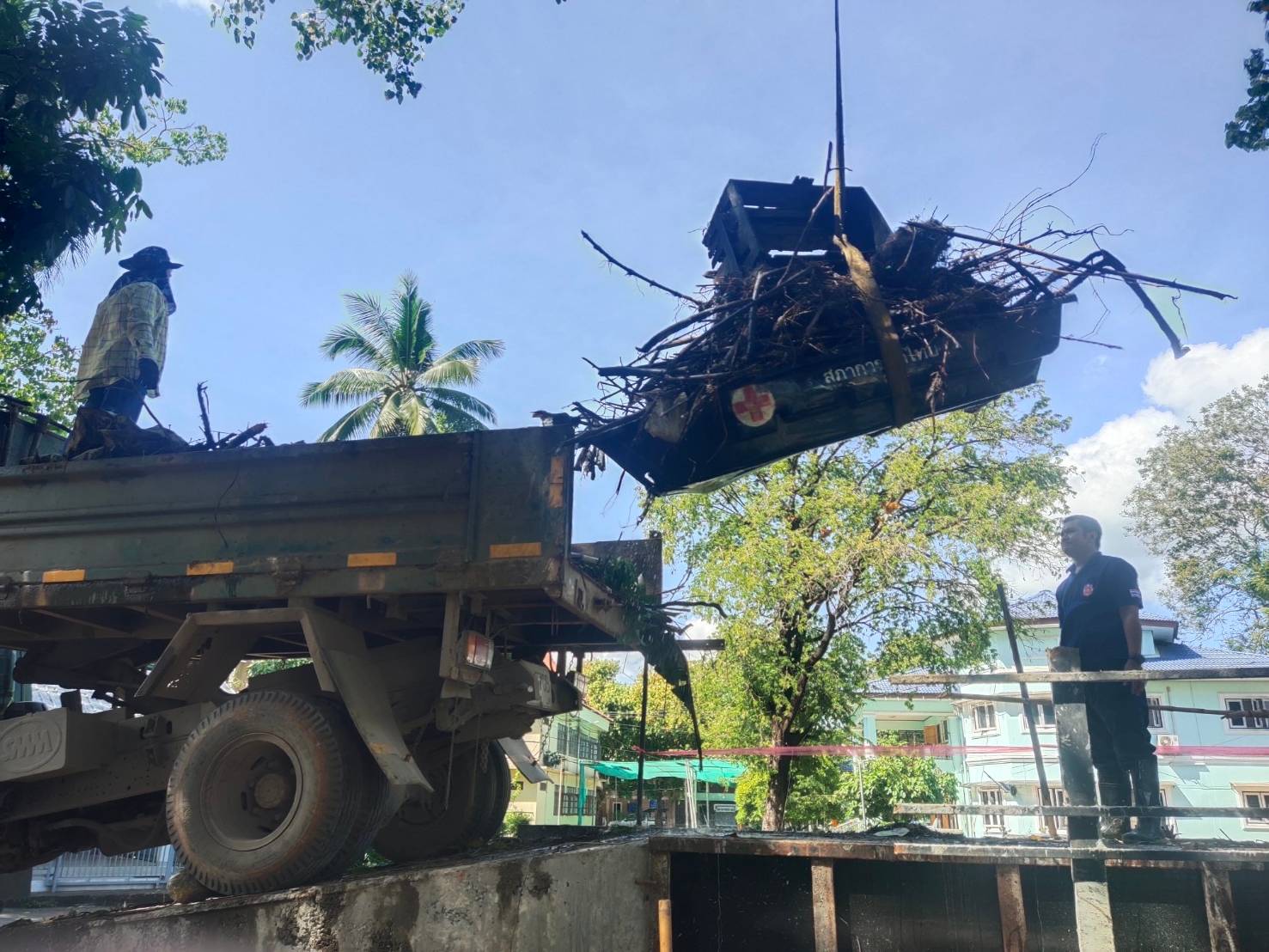 ขนทิ้งร่วมกับกองช่างฯ เจ้าหน้าที่ป้องกันฯ บริเวณลำห้วยวัดมณีไพรสณฑ์