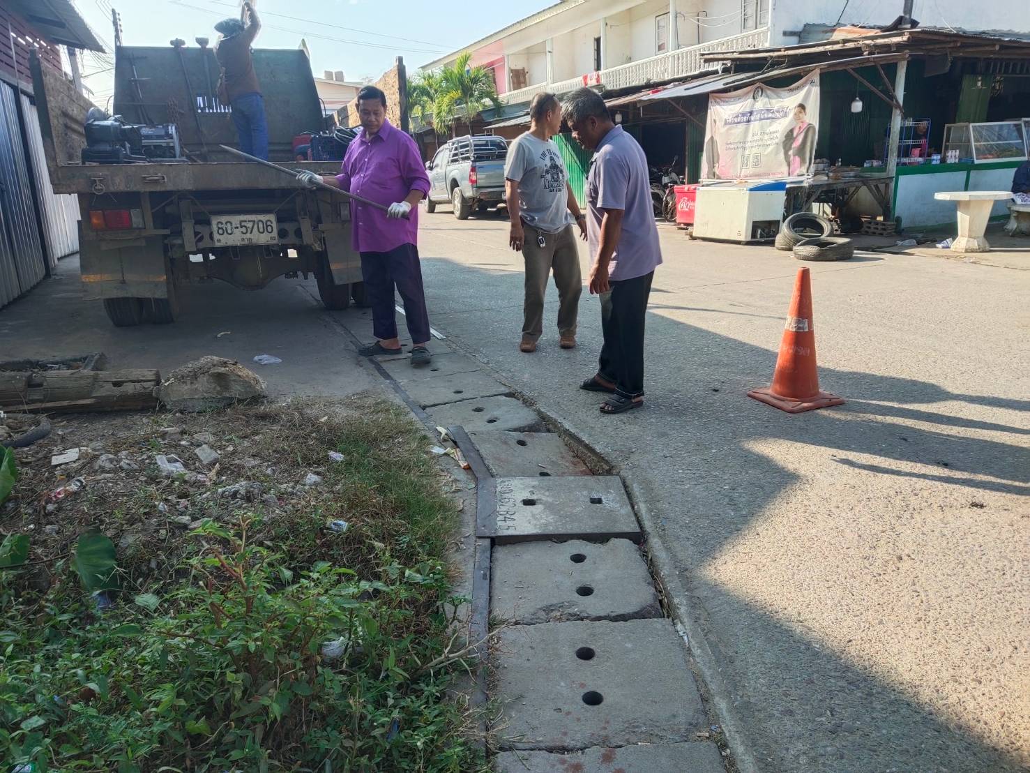 เข้าดำเนินการซ่อมแซมฝาท่อระบายน้ำ (ฝารางยู) ทรุดตัว บริเวณสามแยกสนามโหด ชุมชนอิสลาม