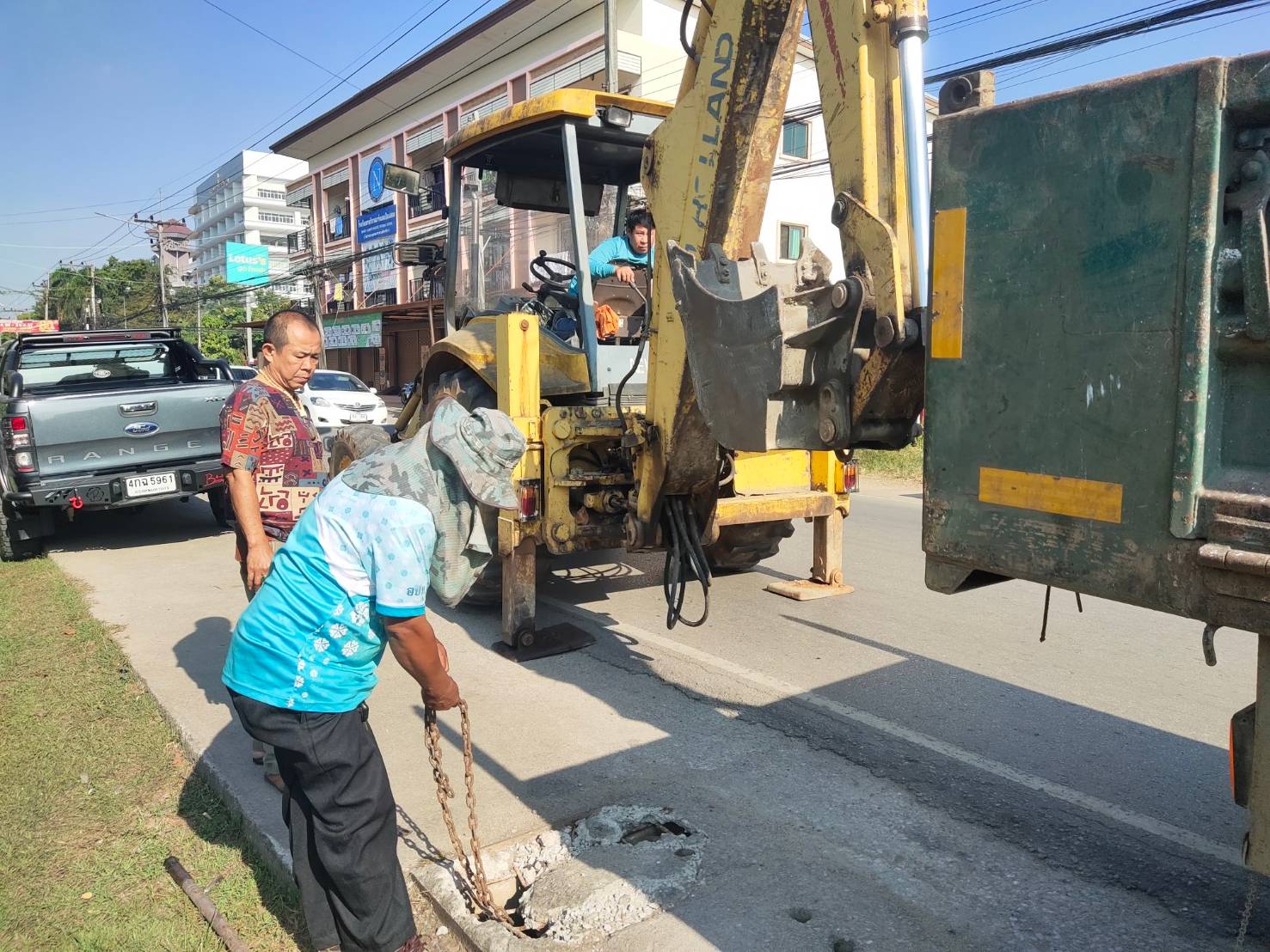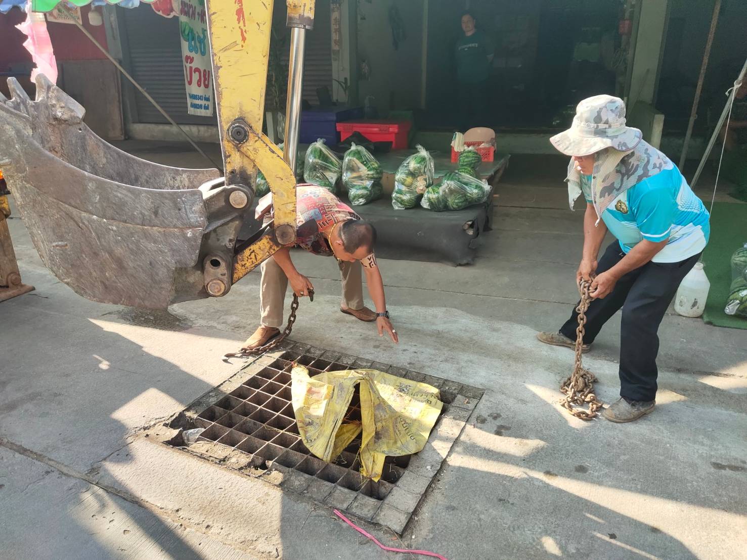 เจ้าหน้าที่ภาคสนามกองช่างสุขาภิบาล เข้าดำเนินการเปลี่ยนฝาท่อระบายน้ำชุดรุด