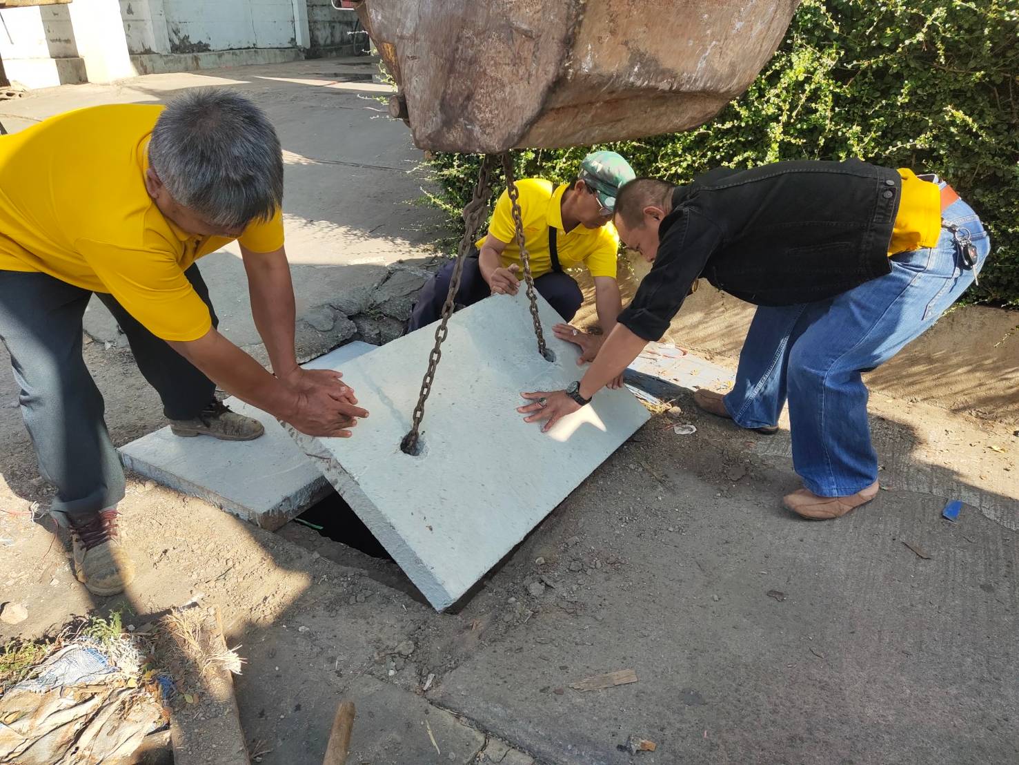 เข้าดำเนินการเปลี่ยนฝาท่อระบายน้ำ (ผู้ร้องขอเปลี่ยนเป็นฝาปูน ) จำนวน 2 แผ่น บริเวณโรงน้ำแข็งตลาดสีมอย ถนนเย็นอากาศ
