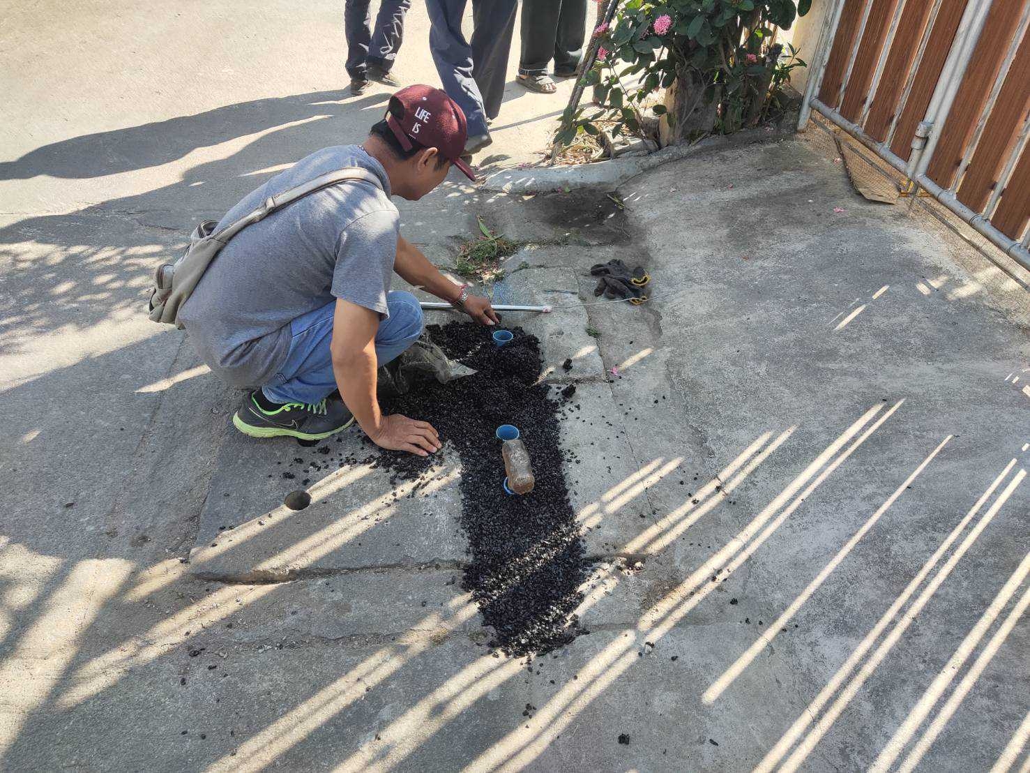 เข้าดำเนินการลงยางมะตอยฝาท่อระบายน้ำ บริเวณภายในซอยโรงแรมทวิพัฒน์ ชุมชนมณีไพรสนฑ์