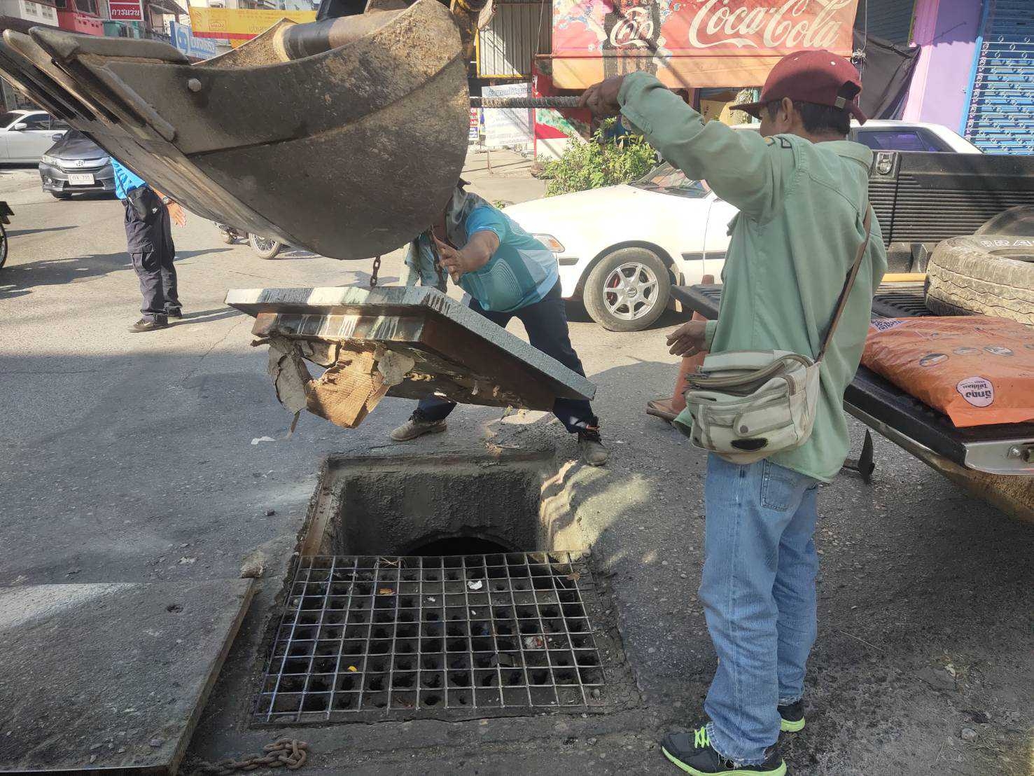 เข้าดำเนินการเปลี่ยนฝาท่อระบายน้ำชำรุด บริเวณสามแยกหน้าไปรษณีย์แม่สอด