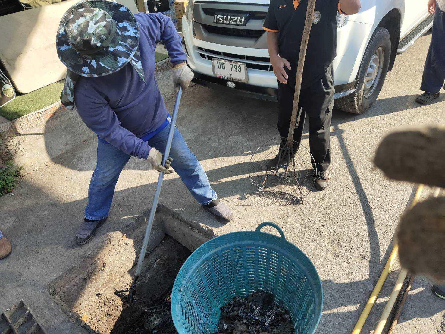 เข้าดำเนินการทะลวงท่อระบายน้ำ บริเวณหน้าร้านไอติมไม่อ้วน ตรงข้ามโรงเรียนสรรพวิทยาคม