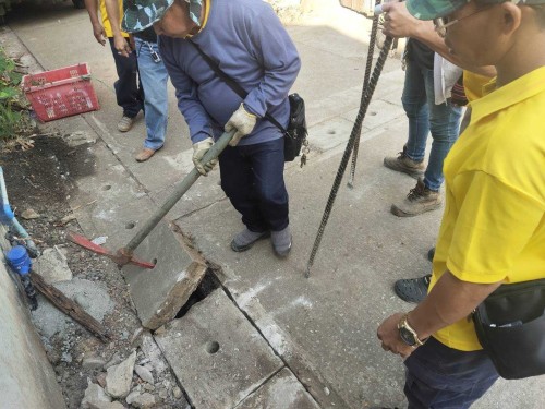 2. เจ้าหน้าที่ภาคสนามกองช่างสุขาภิบาล เข้าดำเนินการเปลี่ยนฝาท่อระบายน้ำชำรุด