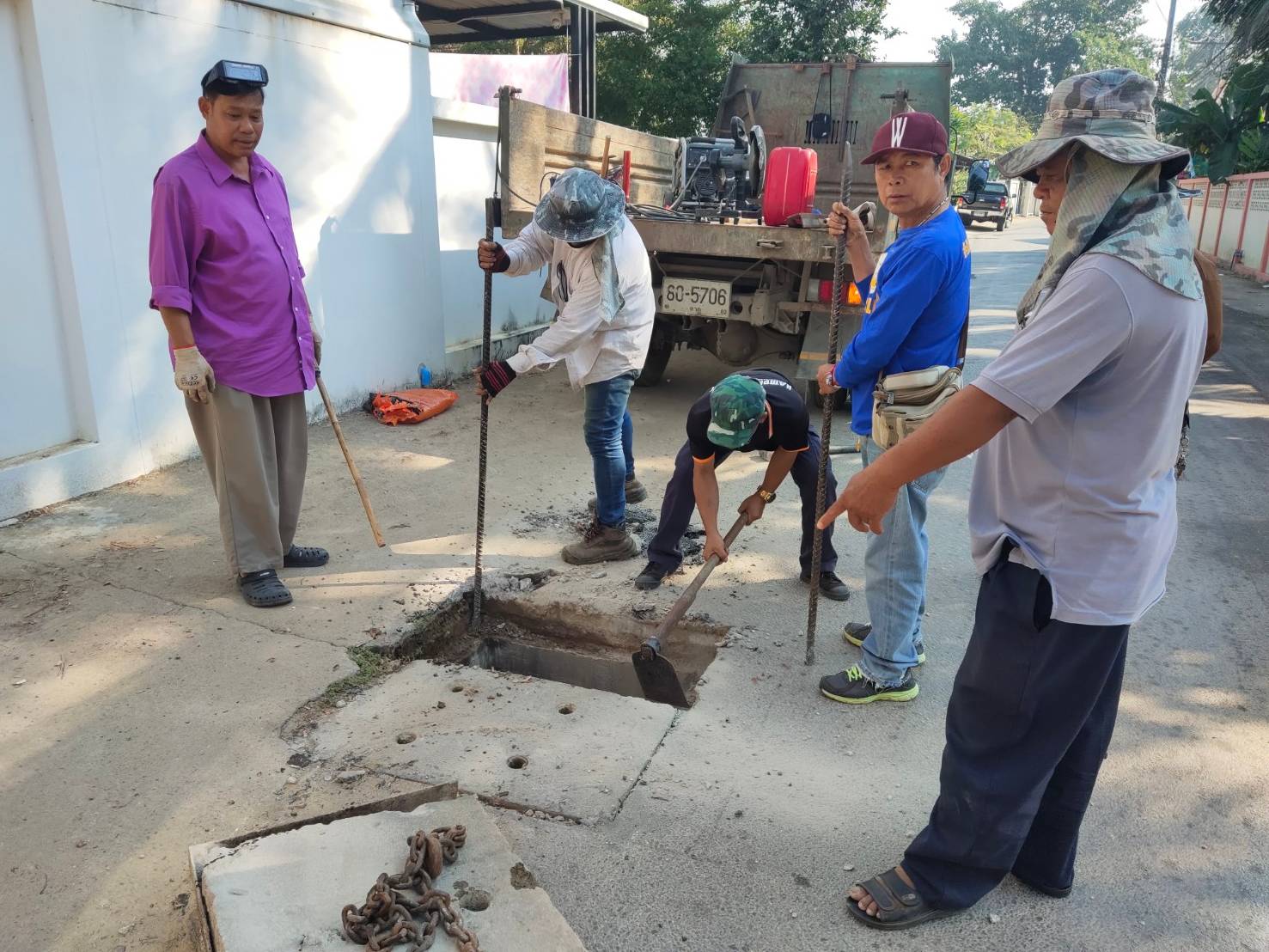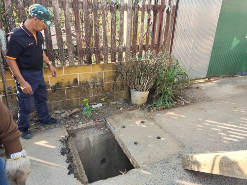 ดำเนินการเสริมฝาท่อระบายน้ำที่ทรุดตัว จำนวน 6 จุด บริเวณถนนสายบ้านสวนดาบพร ชุมชนดอนไชย