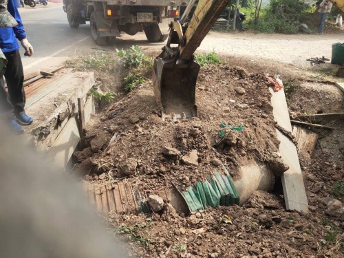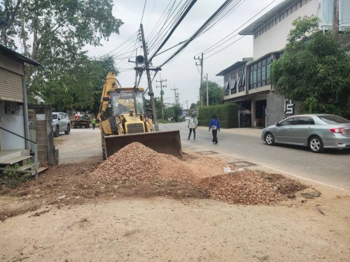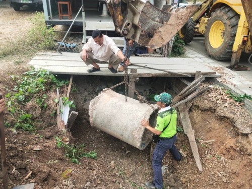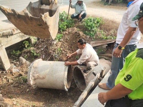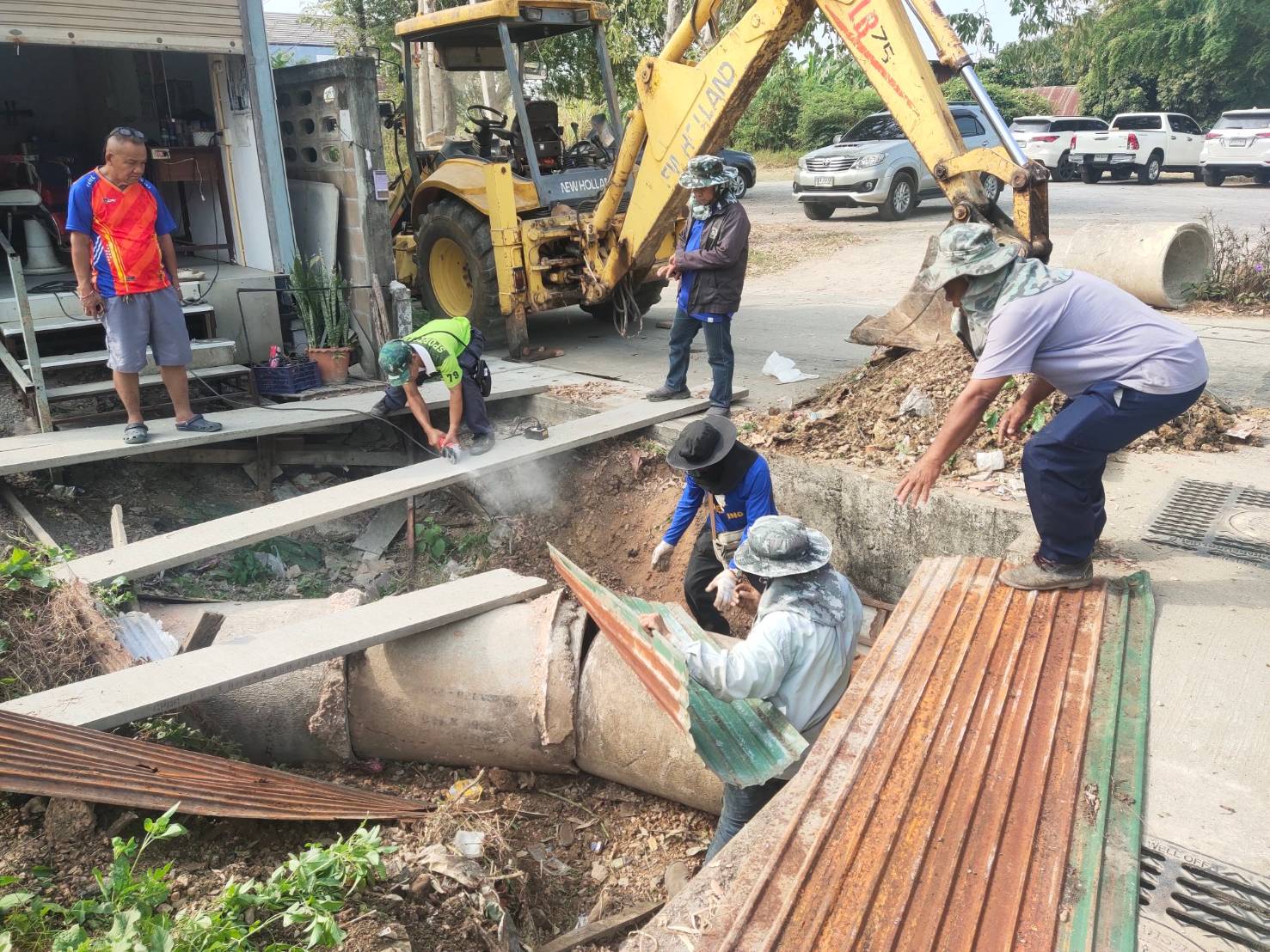 ดำเนินการวางท่อระบายน้ำ ค.ส.ล. ขนาด 60 ซม. จำนวน 5 ลูก พร้อมปรับพื้นที่ด้วยดินลูกรังและหินคลุก