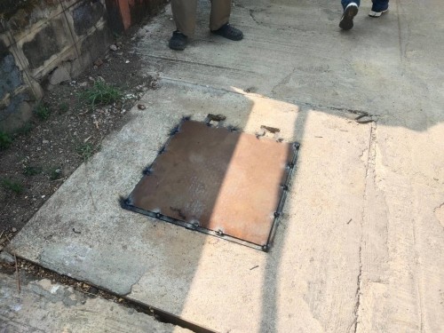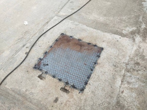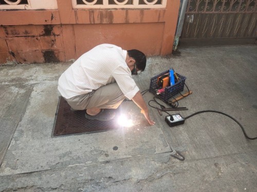 เข้าดำเนินการนำเหล็กแผ่น ขนาด 62x62 ซม. จำนวน 2 แผ่น ปิดฝาท่อระบายน้ำ จำนวน 2 บ่อพัก