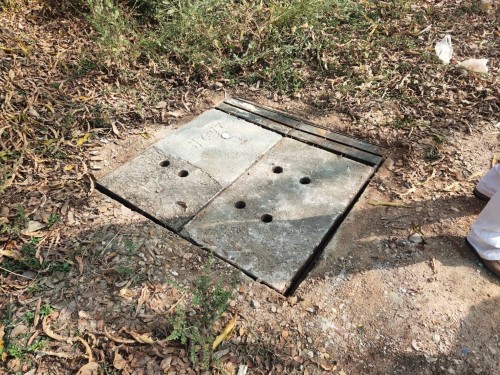 เข้าดำเนินการใส่ฝาท่อระบายน้ำ (กรณีฝาท่อระบายน้ำตะแกรงเหล็กสูญหาย) จำนวน 4 บ่อพัก 8 ฝา