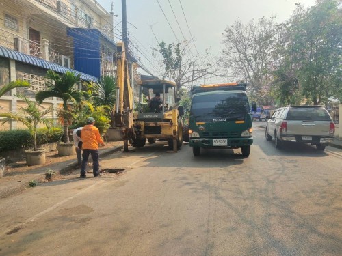 1. เจ้าหน้าที่ภาคสนามกองช่างสุขาภิบาล เข้าดำเนินการเปลี่ยนฝาท่อระบายน้ำที่ชำรุด
