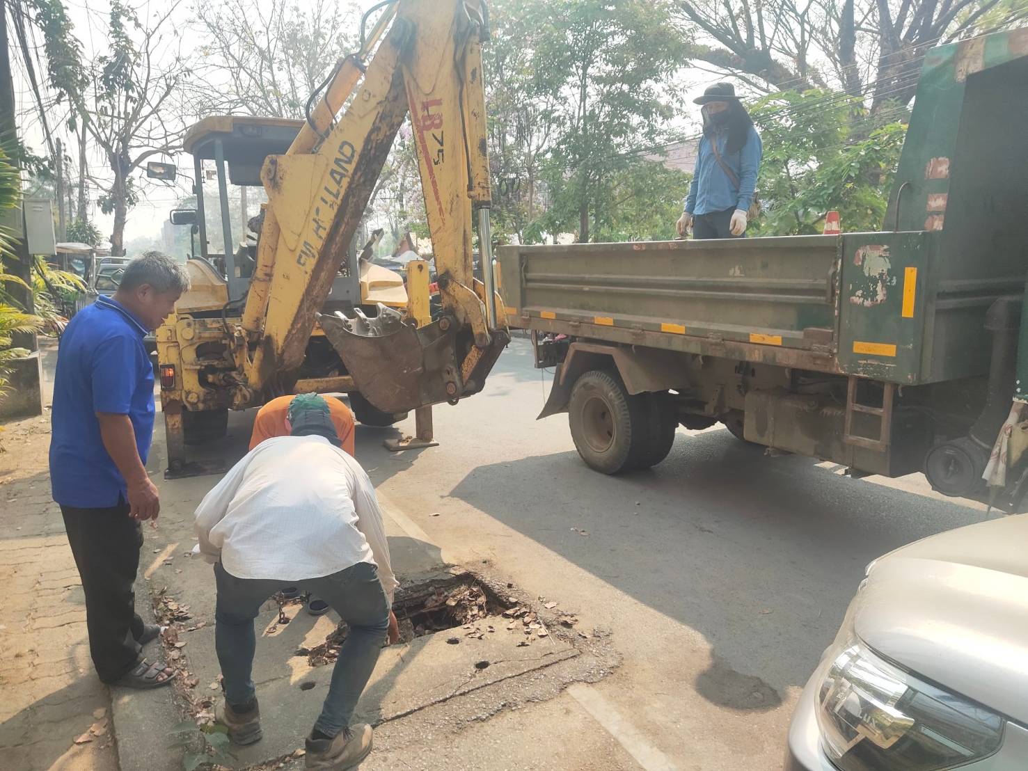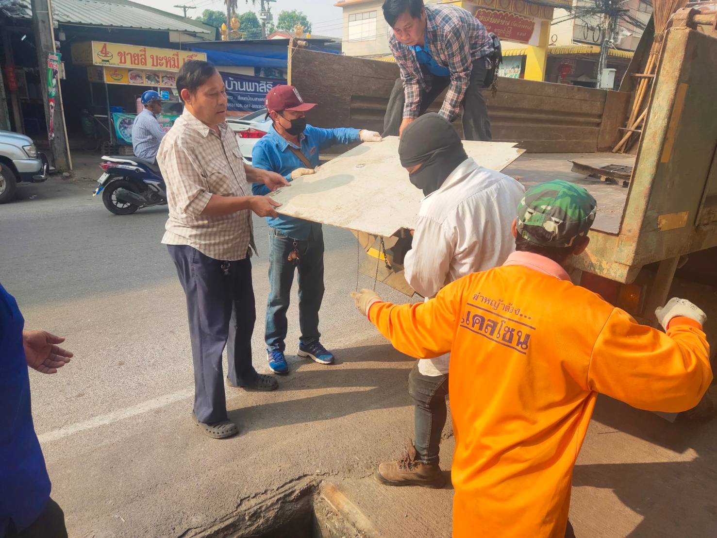 2. เจ้าหน้าที่ภาคสนามกองช่างสุขาภิบาล เข้าดำเนินการเปลี่ยนฝาท่อระบายน้ำที่ชำรุด