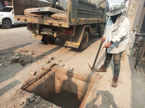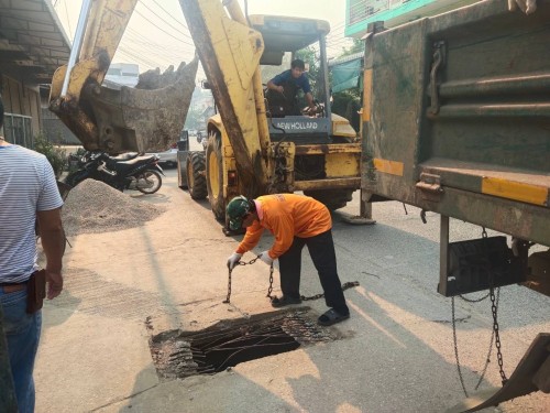 เข้าดำเนินการเปลี่ยนฝาท่อระบายน้ำชำรุด บริเวณชุมชนอิสลาม 4 แยกน้ำบ่อ (ร้านรับซื้อของเก่า)