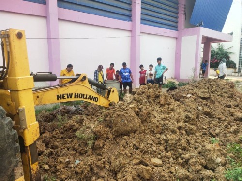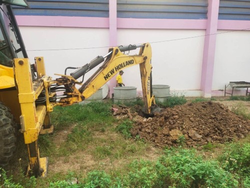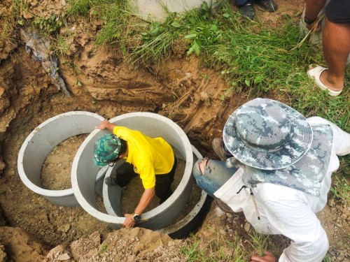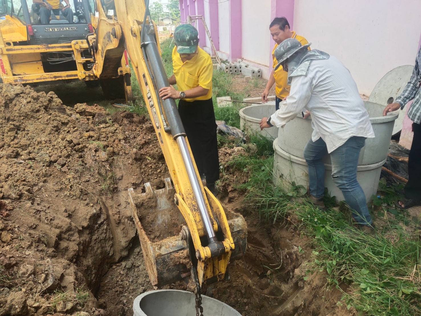 1. เจ้าหน้าที่ภาคสนามกองช่างสุขาภิบาล เข้าดำเนินการขุดหลุมพร้อมวางท่อ (บ่อเกรอะ)