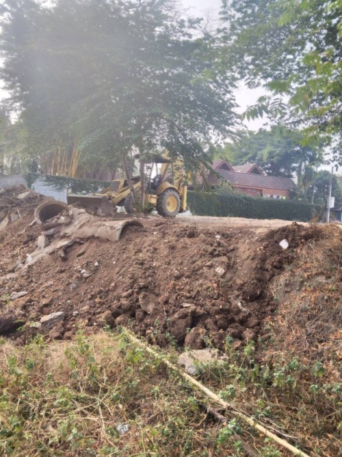 3. เจ้าหน้าที่ภาคสนามกองช่างสุขาภิบาล เข้าดำเนินการปรับเกลี่ยกองดิน