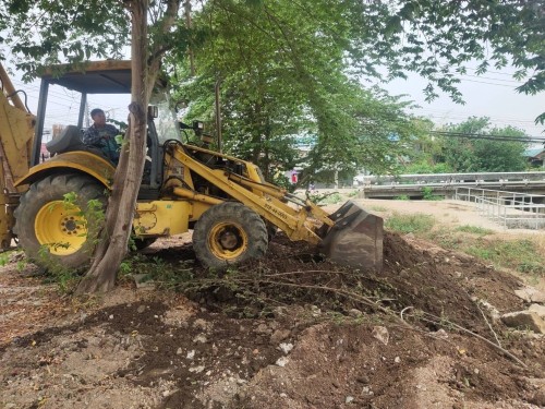 เข้าดำเนินการขนดินพร้อมปรับเกลี่ยดิน บริเวณสะพานร่วมแรง ชุมชนร่วมแรง