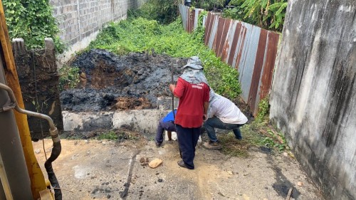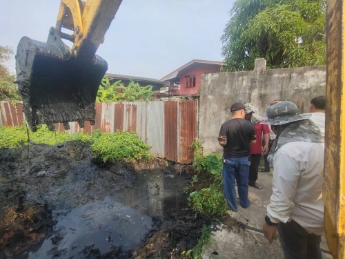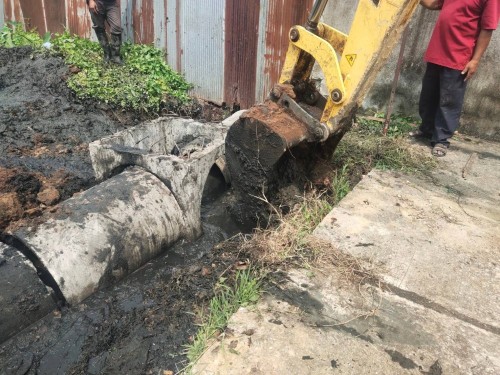 เข้าดำเนินการขุดวางท่อระบายน้ำ ค.ส.ล. 60 ซม. พร้อมบ่อพัก ร่วมกับกองช่างฯ บริเวณชุมชนประชารักษ์
