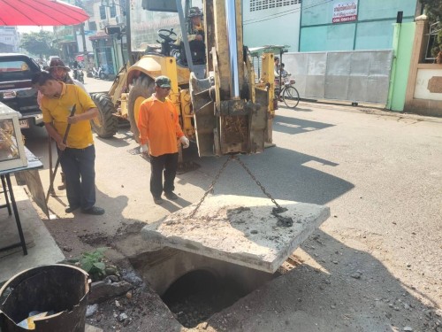 2. เจ้าหน้าที่ภาคสนามกองช่างสุขาภิบาล เข้าดำเนินการ เปลี่ยนฝาท่อระบายน้ำชำรุด บริเวณโกดังฮงเฮงฮวด (หลังสถานีดับเพลิง)