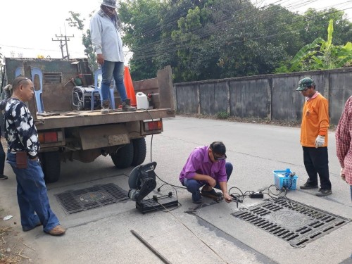 เข้าดำเนินการซ่อมแซมฝาท่อระบายน้ำชำรุด (มีเสียงดัง) บริเวณชุมชนประชารักษ์ ถนนเส้นบ้านพ่อเลี้ยงยง , บ้านป้าน้อย