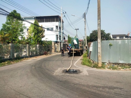1. เจ้าหน้าที่ภาคสนามกองช่างสุขาภิบาล เข้าดำเนินการลงสารน้ำ EM ที่ผ่านการเพาะเชื้อแล้ว