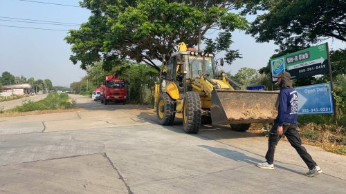 ร่วมกับเจ้าหน้าที่ป้องกันฯและกองช่างฯ บริเวณถนนเรียบคลองชลประทานหลังร้านแม็คโครบ้านโต้ง